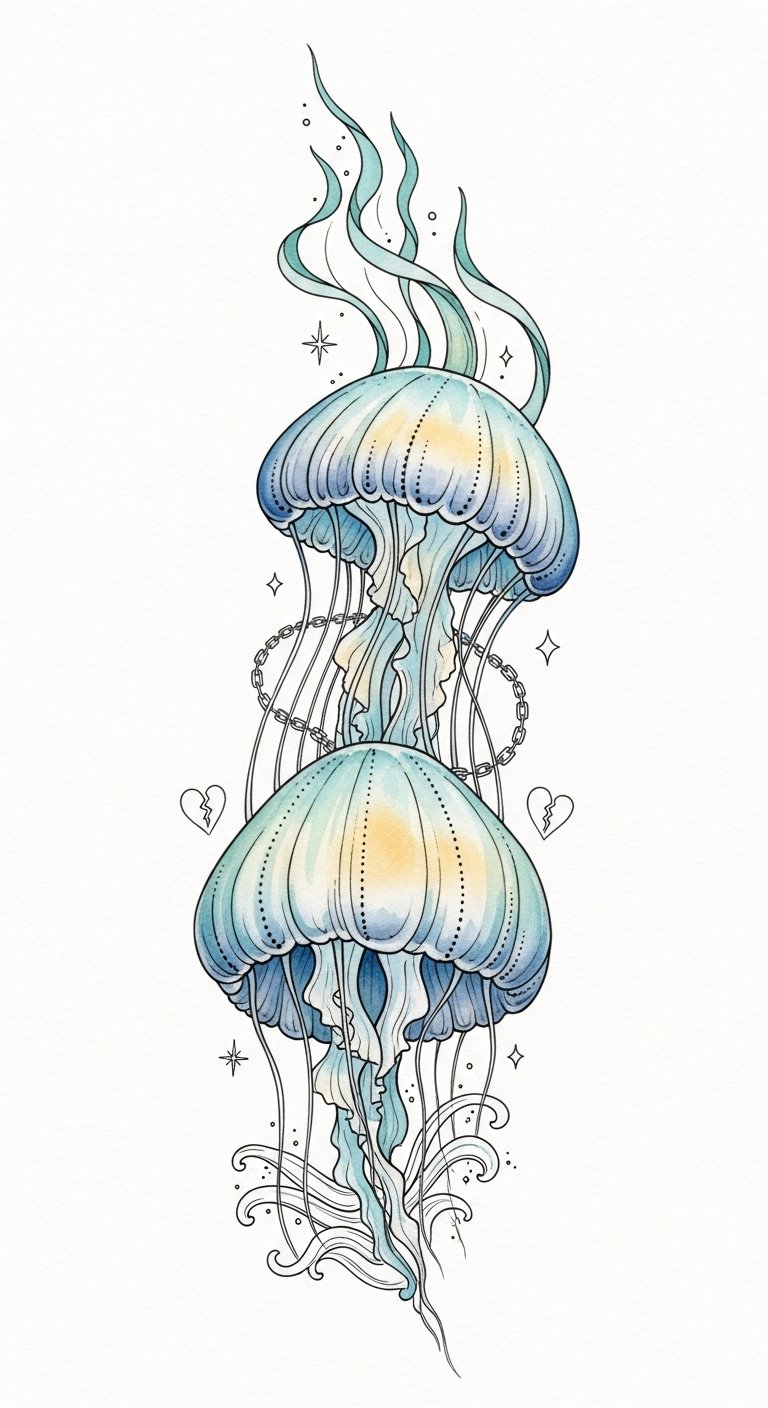 Each inked jellyfish serves as a personal reminder of your journey toward self-discovery, showcasing your embrace of freedom symbolism and independence expression. Immerse yourself in your own unique story today!