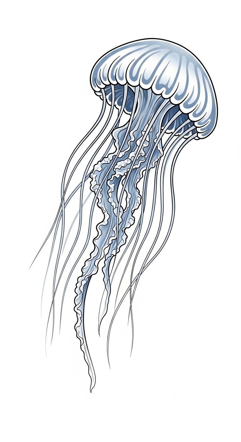 This tattoo concept uses the original text as a visual and thematic guide: flowing jellyfish forms rendered with translucent gradients and dynamic linework to evoke motion, placed along the shoulder blade, ribcage, or forearm so the body’s contours emphasize their sway; symbolism centers on freedom, resilience, and the ephemeral beauty of life, aiming to evoke calm and wonder in the wearer while inviting observers to pause and appreciate the delicate balance between strength and grace.