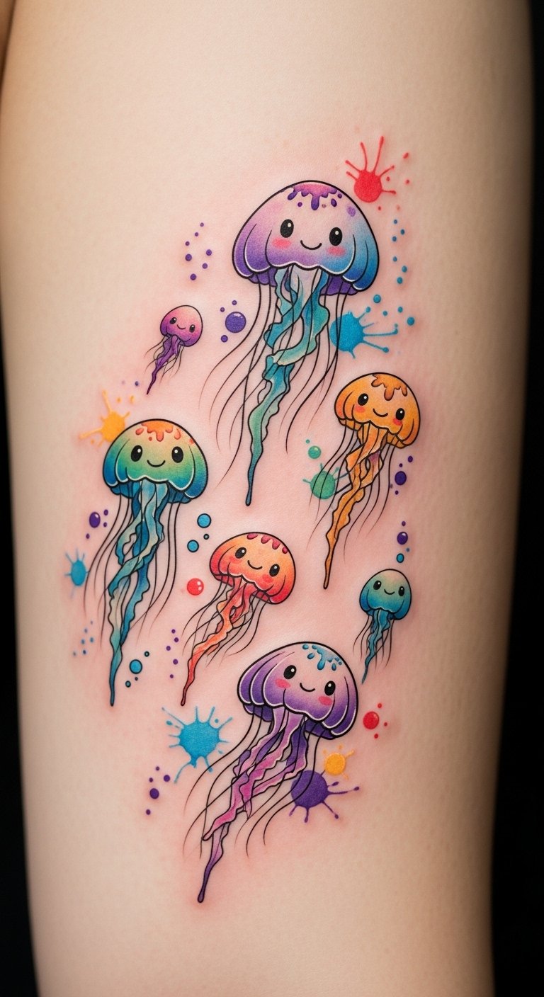 Imagine bold hues dancing across your skin, each playful jellyfish embodying freedom and fun. These whimsical designs invite you to express your unique spirit, making every glance at your ink a reminder to embrace life’s delightful adventures.