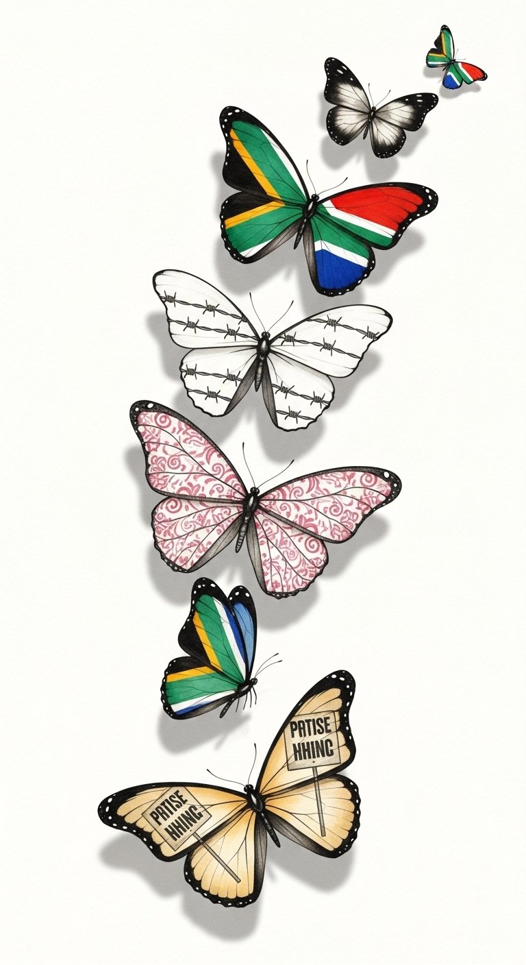 Through butterfly symbolism, she weaves stories of resilience and transformation, illustrating the historical significance of movements like the South African apartheid. Each fluttering wing becomes a tribute to freedom, urging you to embrace your own journey.