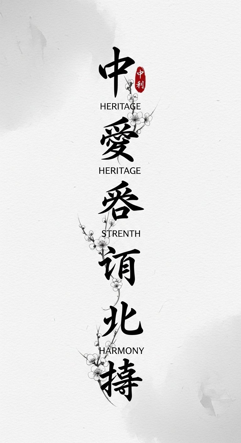 The proposed layout pairs bold and delicate strokes to evoke both resilience and grace; plum blossoms add resilience and renewal, while the vertical flow follows natural body contours for a tattoo that feels intimate and personal, ideal for the inner forearm, ribcage, or alongside the spine to express heritage and identity.