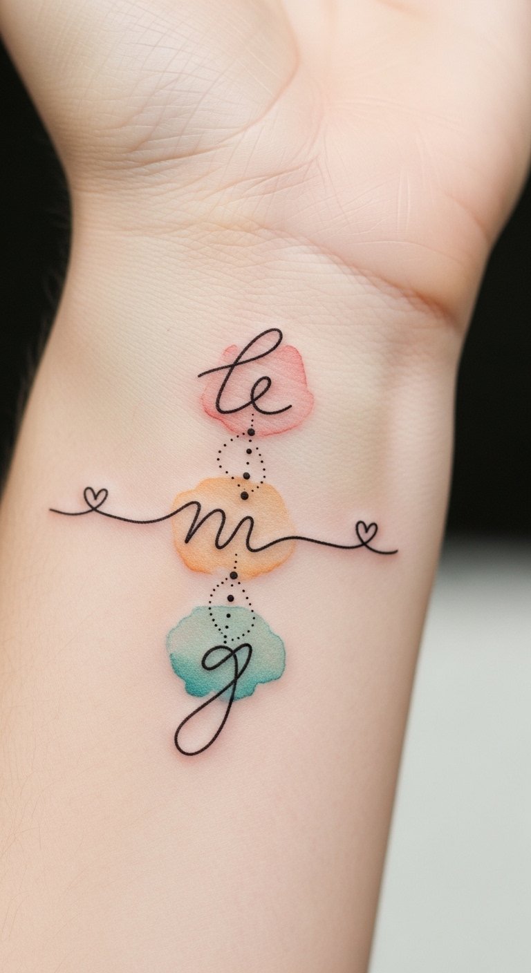 Isn’t that a bold statement? The design channels that sentiment into a tender wrist piece: the three interwoven strokes symbolize parenthood’s entwined lives, the imperfect hearts acknowledge vulnerability and authenticity, and the pastel washes evoke warmth and individuality; placed on the inner wrist for intimacy and visibility, it feels like a private talisman that can be shown to loved ones or kept as a quiet reminder of family and self.