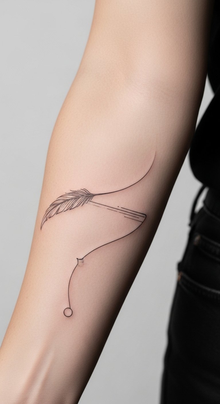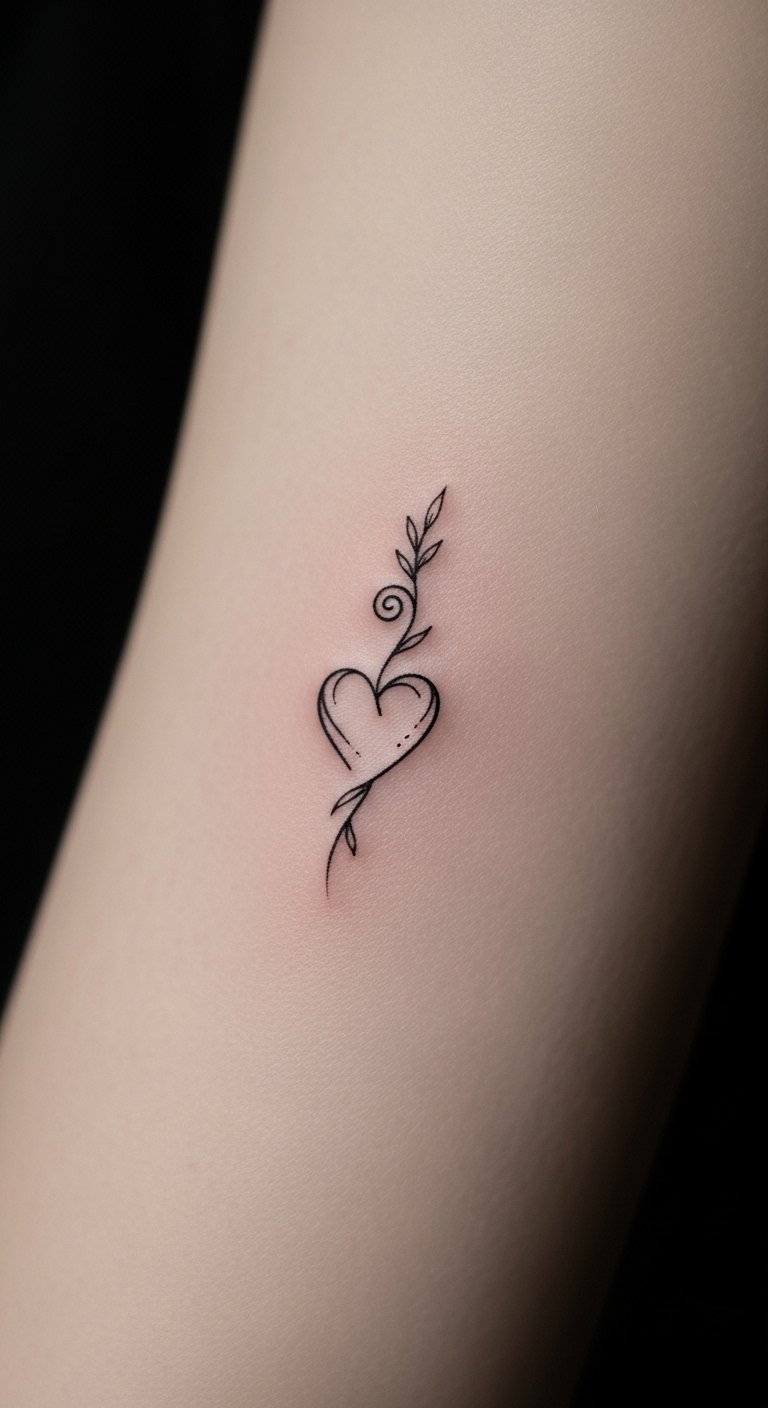The minimal fine-line style and small scale keep the imagery discreet, meant for private placements like the inner ribcage, behind the ear, or inner wrist so the wearer can choose when to reveal the meaning.