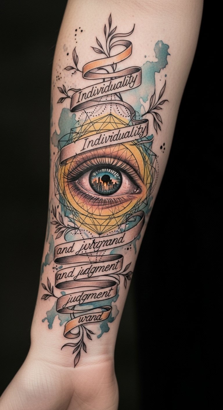 As you navigate the world of personal tattoos, it’s impossible to ignore how public perception shapes your choices and experiences. Tattoo culture thrives on societal norms and celebrity influence, impacting your self-expression and personal identity. Judgment factors can weigh heavy, yet each tattoo serves as an artistic expression of individuality. Embrace the cultural significance behind your ink, celebrating the freedom of individuality expression. This design centers the eye as witness and mirror—symbolizing awareness of external gaze—while the reflected skyline and fading silhouettes represent society and celebrity influence; the ribbons of script and organic vines illustrate the tension and growth between judgment and self-expression. Placed on the forearm or wrist, the piece reads both to the wearer and viewers, invoking resilience, quiet defiance, and celebration of one’s unique identity.