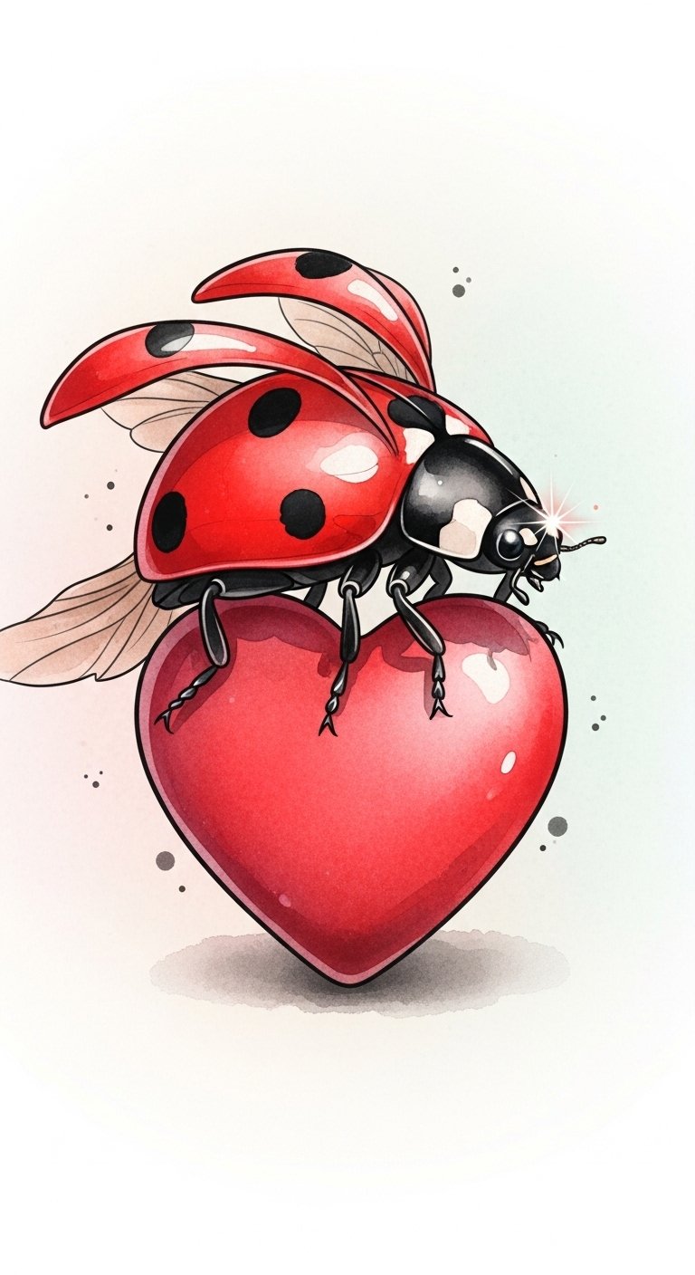 A charming ladybug perched on a heart creates a delightful symbol of love and luck, capturing the essence of joy in your tattoo design.