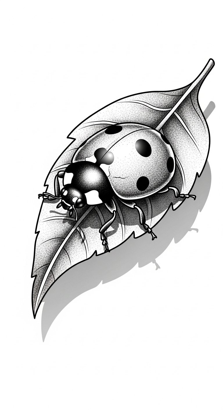Colorful ladybug tattoos bring vibrancy to your skin, but black and grey designs offer a striking alternative that speaks to elegance and timelessness.