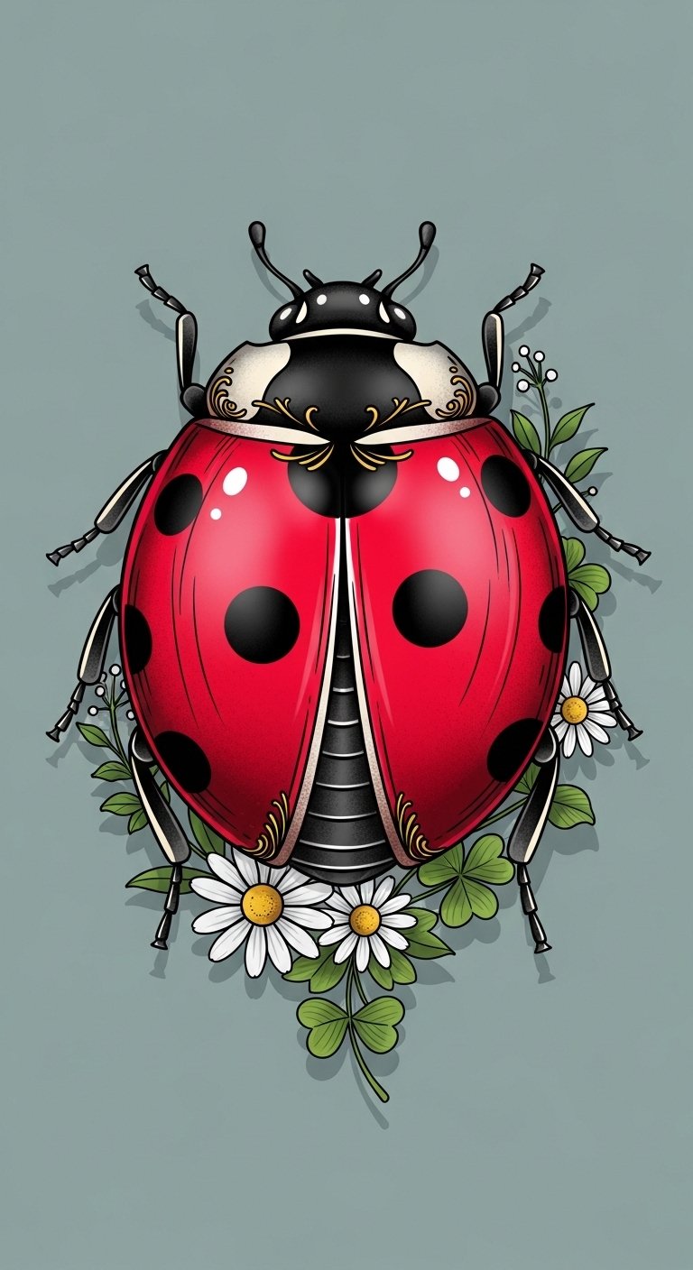 When you think of traditional ladybug tattoo designs, vibrant red and black colors spring to mind, conjuring images of good luck and protection.