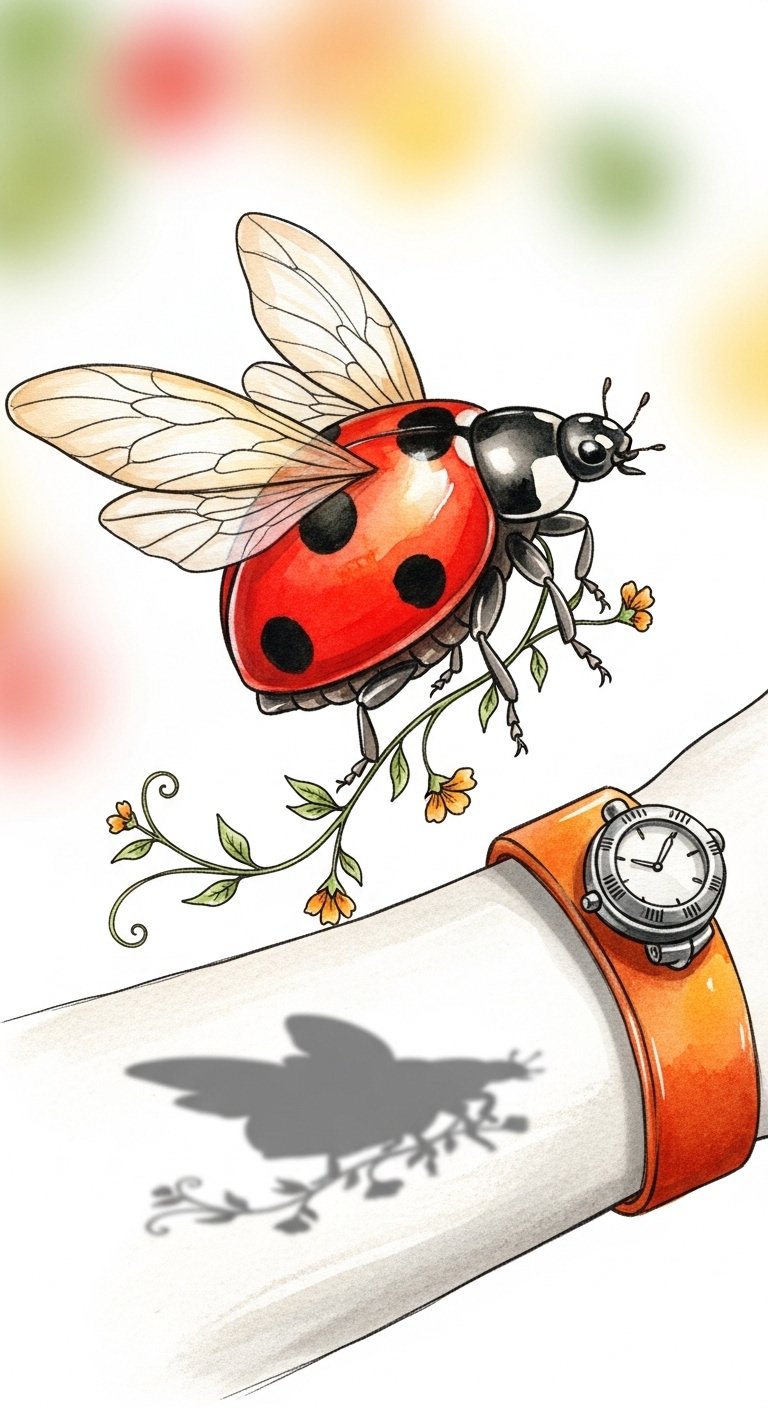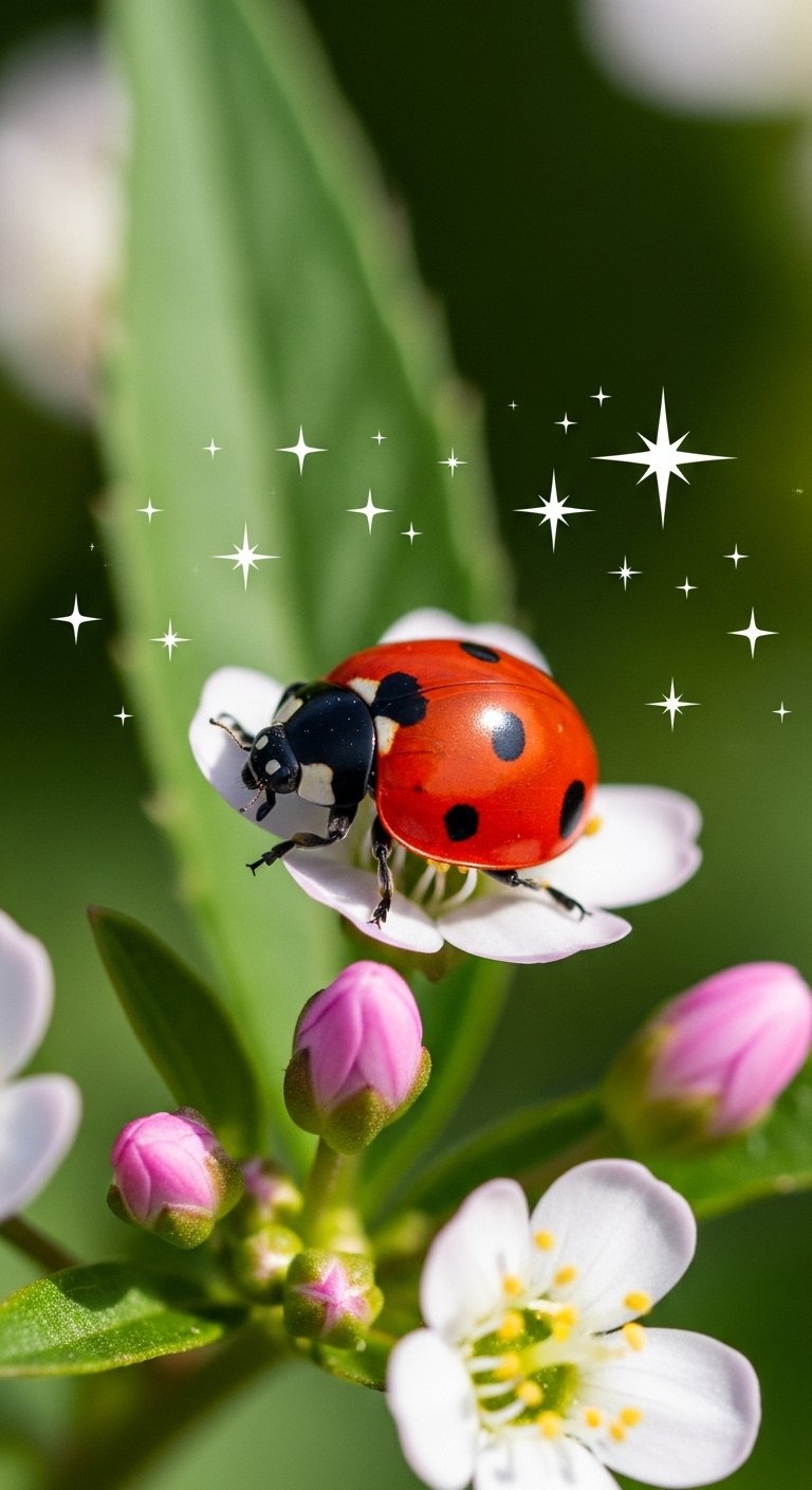 Emotionally the piece evokes hope, protection, and curiosity; its small stars can represent individual goals or memories, while the ladybug anchors the composition as a talisman of change.