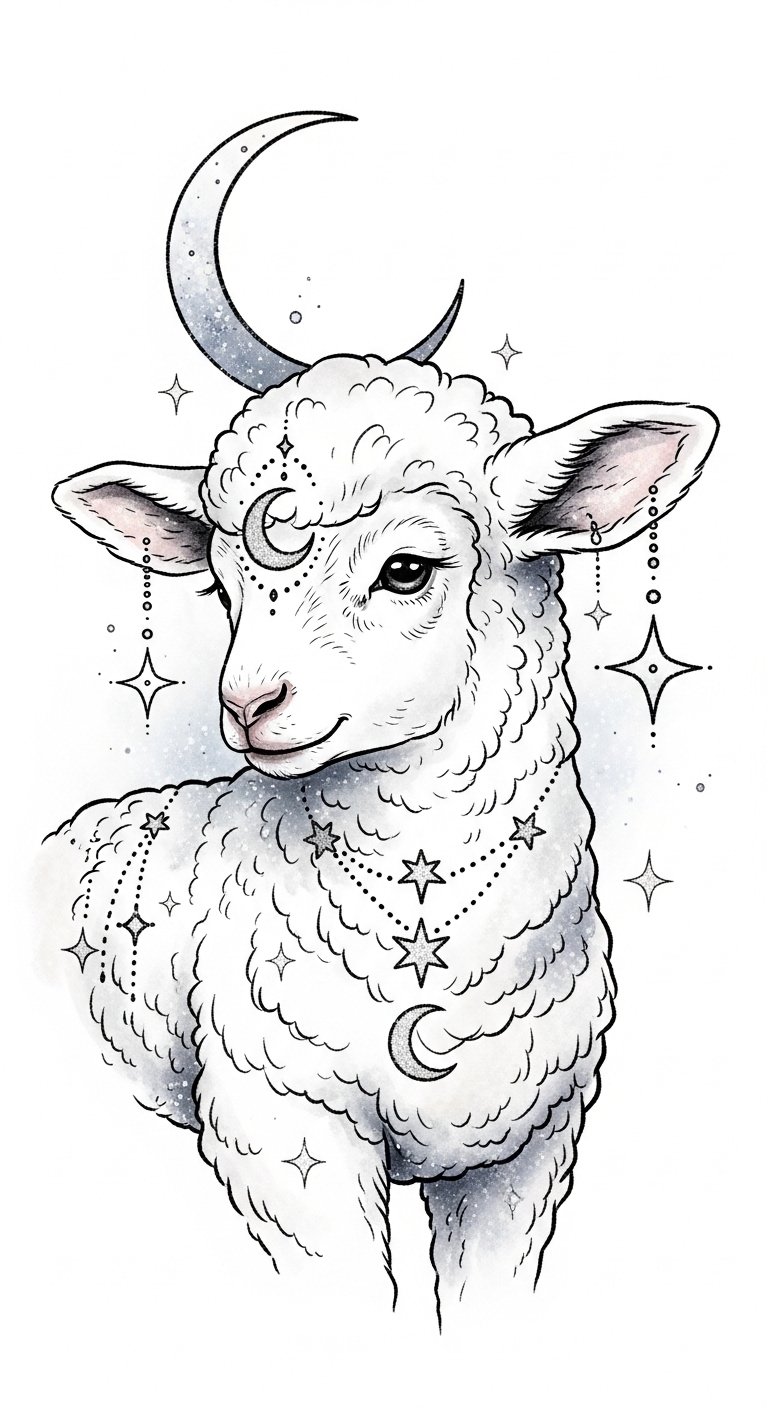 Imagine the soft glow of the moon illuminating the lamb, inviting you to dream and explore the vast universe of your imagination. The design’s gentle lines and calming palette convey serenity and protection; ideal placements include the inner forearm for personal reflection, the shoulder for a visible yet graceful statement, or the ribcage for an intimate piece.