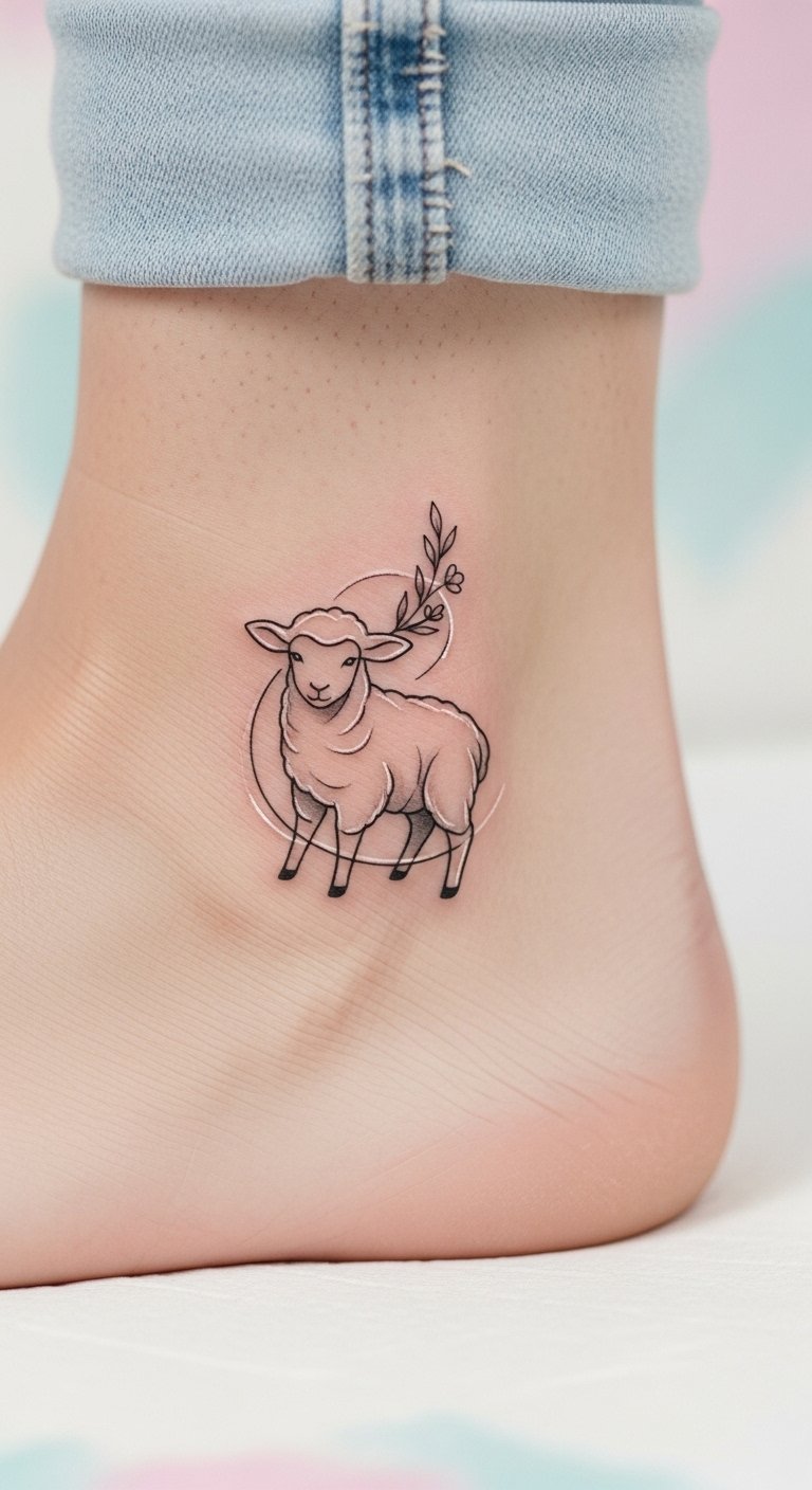 A tiny ankle lamb tattoo serves as a delightful nod to innocence and purity, perfect for those who appreciate subtlety in their body art.