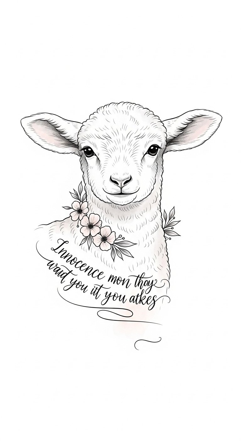 Building on the charm of subtle designs, a lamb tattoo paired with a scripted quote about innocence adds a meaningful touch to your body art.
