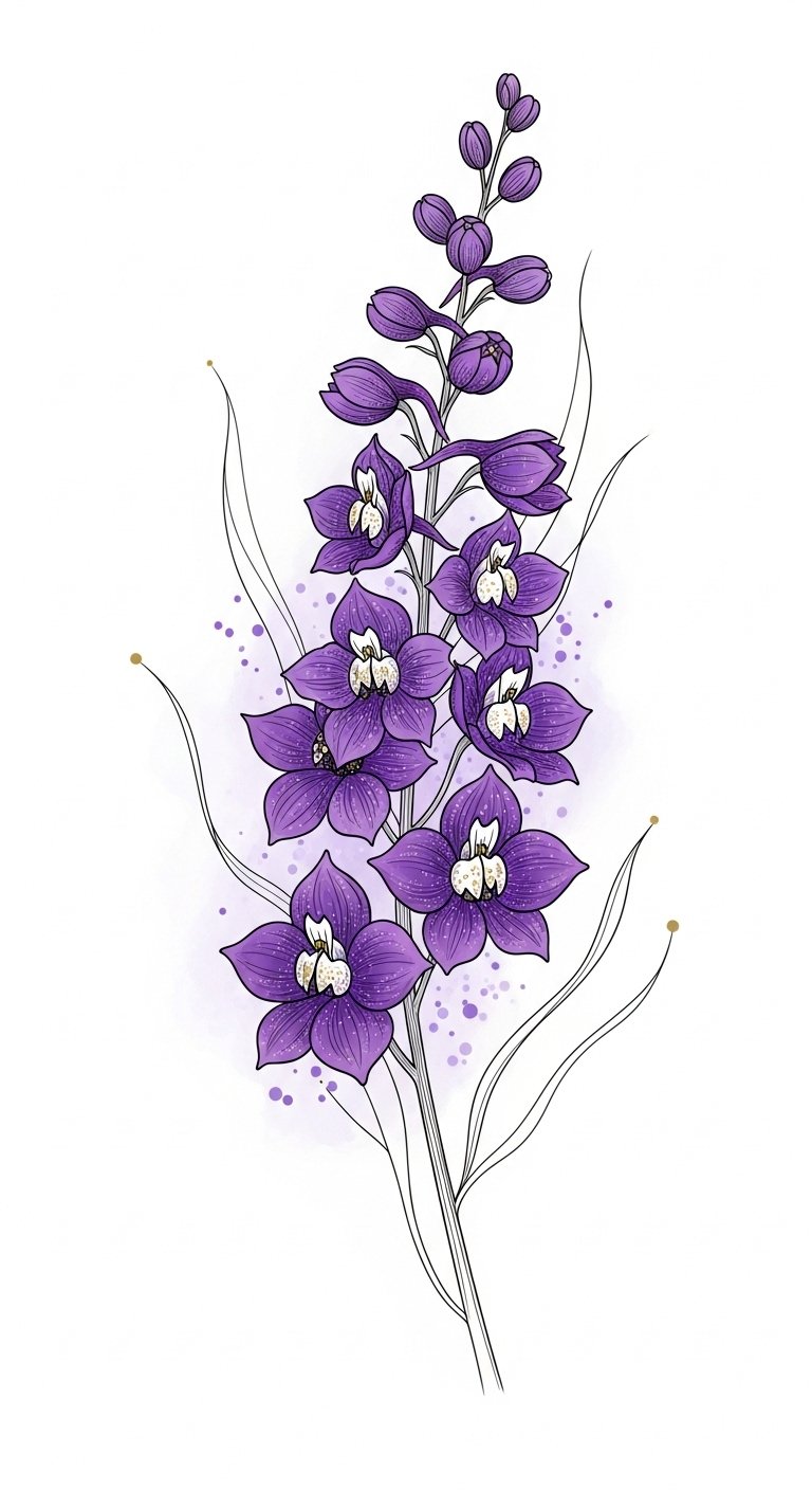 Opting for a minimalist larkspur design empowers you to showcase your individuality while embracing the charm of this exquisite bloom.