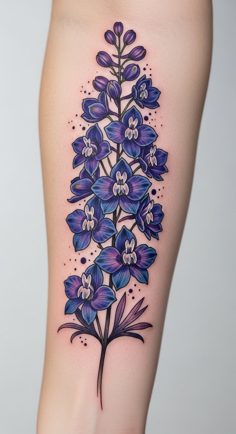 Each larkspur inked tells your story, celebrating freedom and the beauty of life in vivid color.