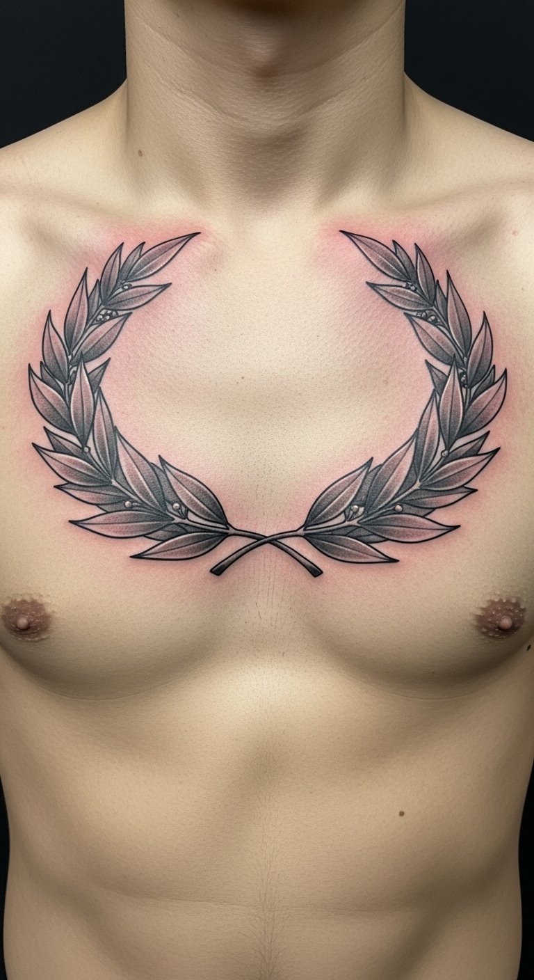 Detailed Chest Laurel Wreath Tattoo