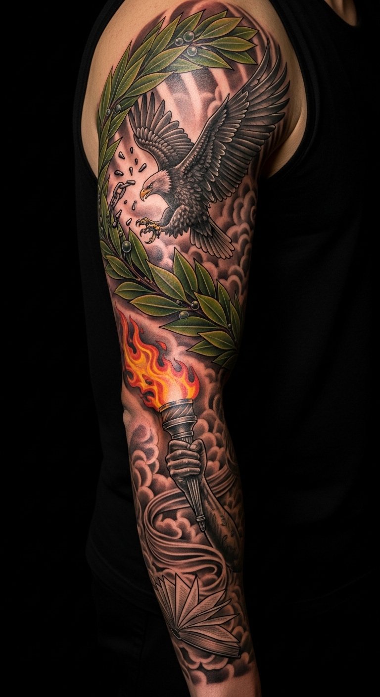 Artistic styles and innovative tattoo techniques create a vibrant tapestry, celebrating freedom and individuality in each unique laurel wreath tattoo.