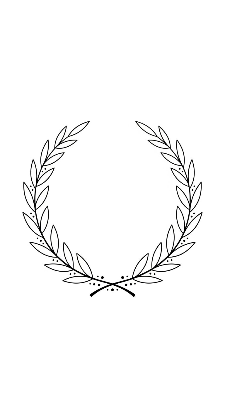 This laurel wreath design symbolizes victory, peace, and a deep connection to nature; delicate leaves and small blossoms convey resilience and grace, while flowing curves evoke freedom and continuity.