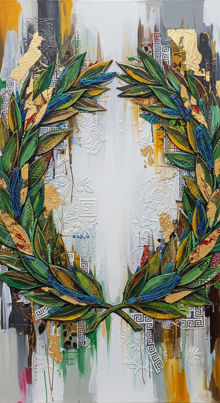 Mixed Media Laurel Wreath Art