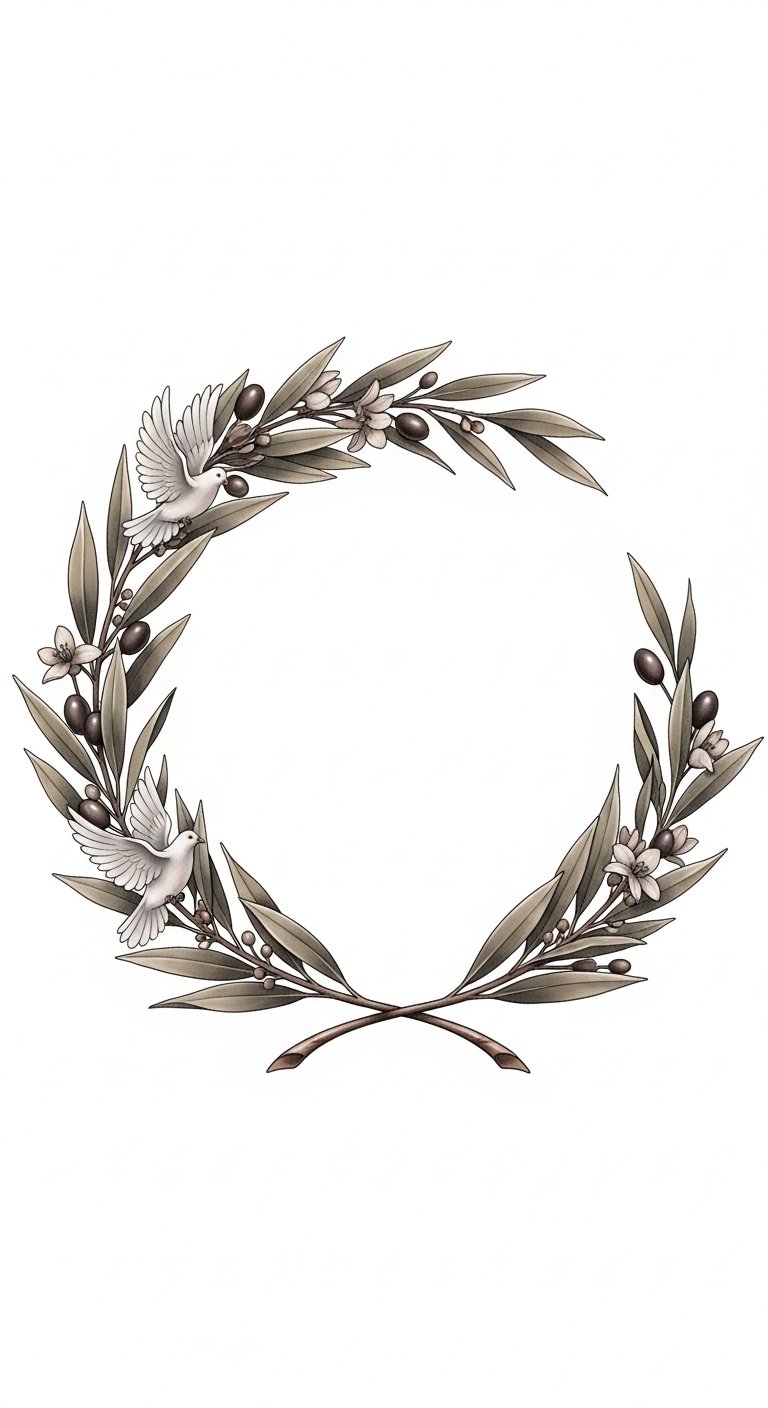 Each stroke embodies freedom, allowing you to express individuality while honoring tradition. Embrace this striking simplicity, and let your inner strength shine through. The wreath symbolizes triumph and renewal; the monochrome palette focuses attention on form and balance, evoking calm confidence.