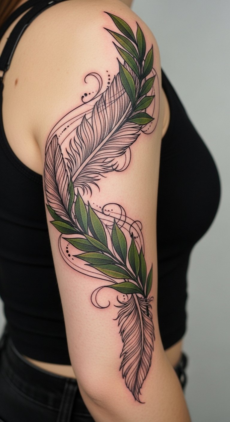 Emotionally it conveys resilience, aspiration, and graceful strength; visually it balances fine line detail in the plumes with slightly bolder laurel contours for contrast.