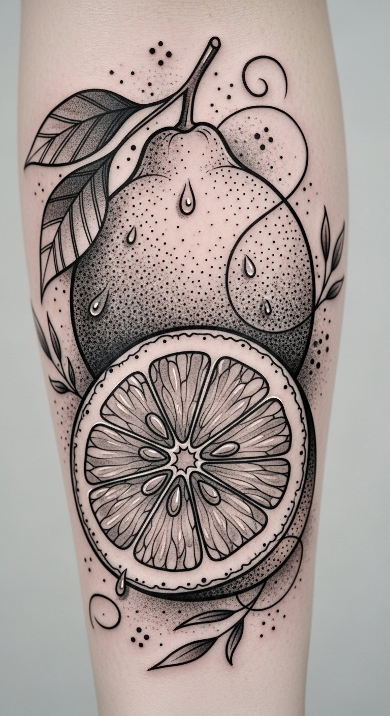 Black and Grey Lemon Tattoo