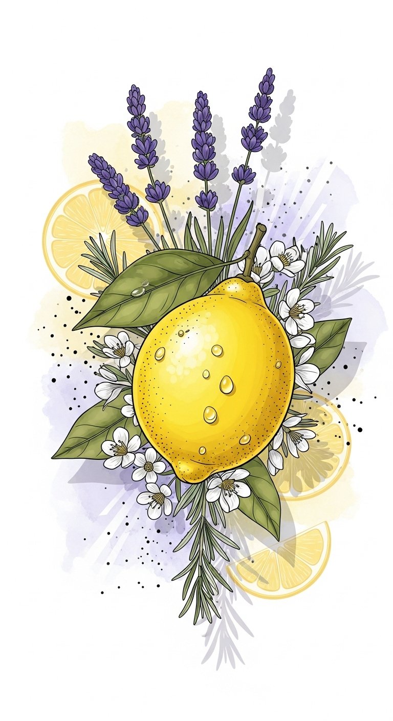 Infusing lemon color symbolism and cultural significance, this design balances invigorating zest with calming botanical elements to evoke freshness, renewal, and subtle healing energy; the bright lemon is the focal point for optimism and vitality, while the surrounding florals and herbs suggest seasons, memory, and domestic comfort—ideal for placement on the forearm, upper arm, or shoulder where the composition can wrap slightly for movement and visibility, conveying cheerfulness and personal nourishment.