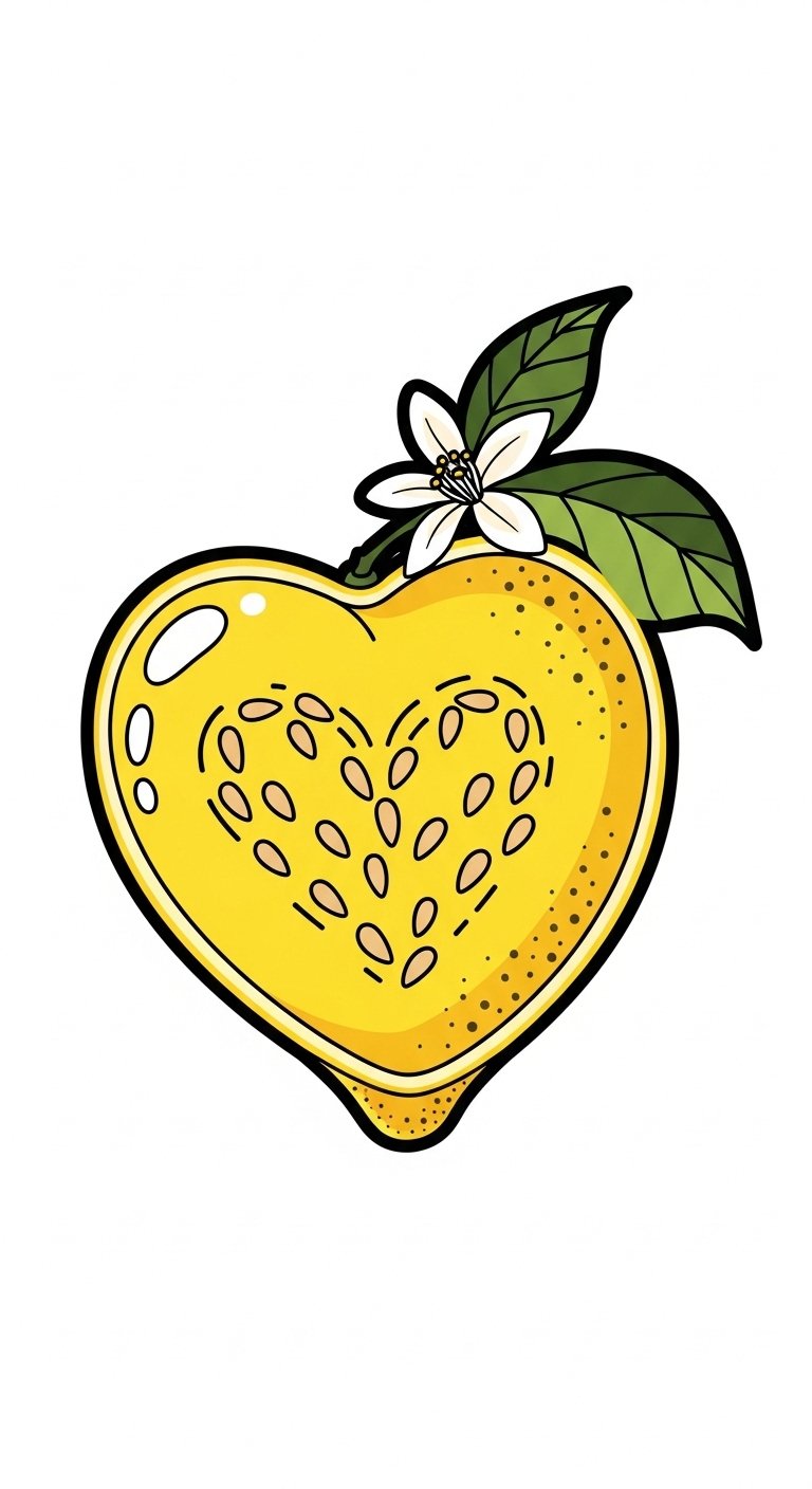 This lemon and heart combination beautifully captures heart symbolism, serving as a love representation that celebrates passion and freedom.