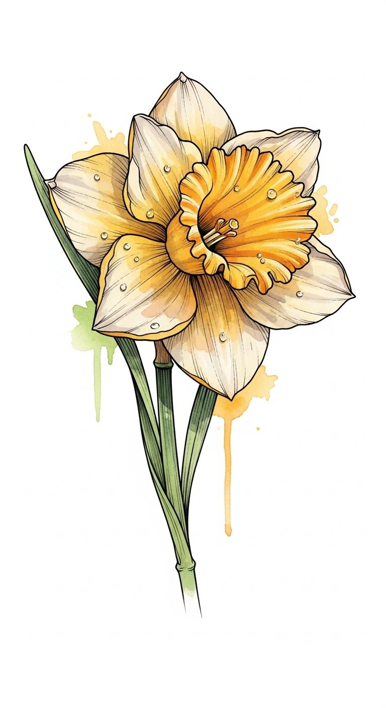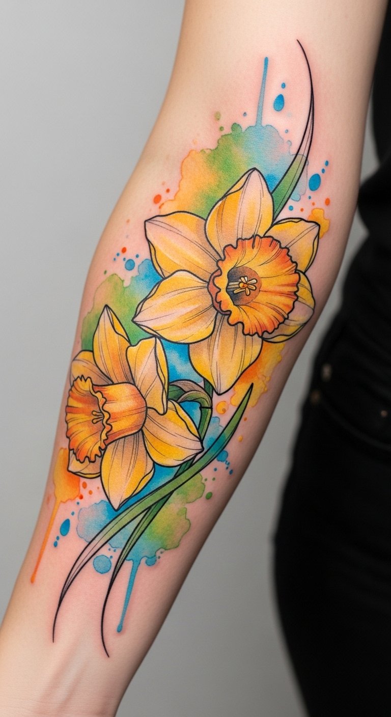Watercolor Daffodil Tattoos: A Splash of Color