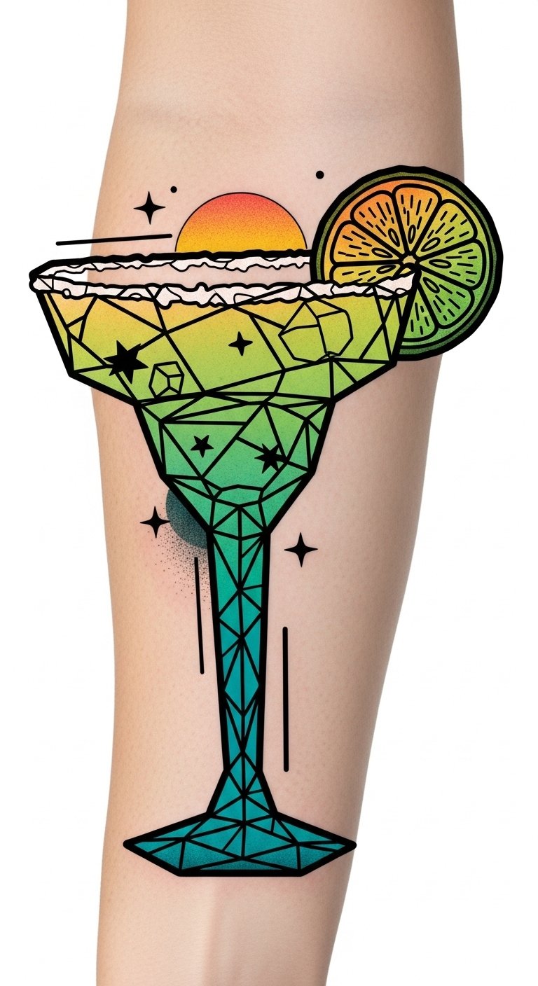 While the retro margarita tattoo evokes a sense of nostalgia and fun, a geometric margarita design takes a contemporary twist that speaks to modern artistry.