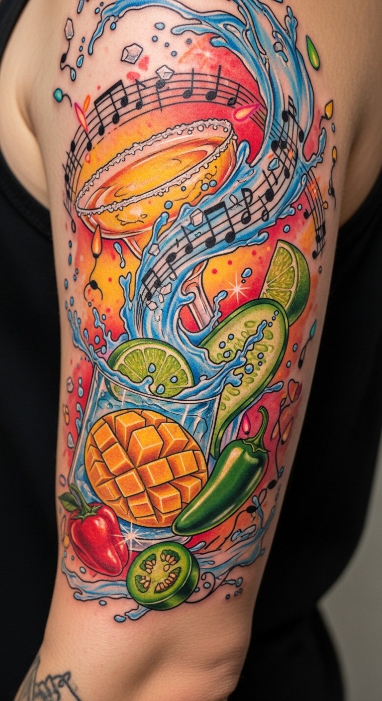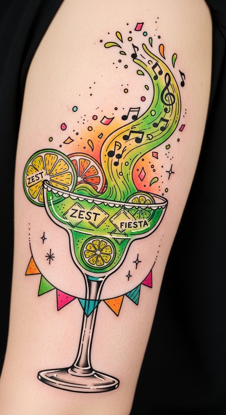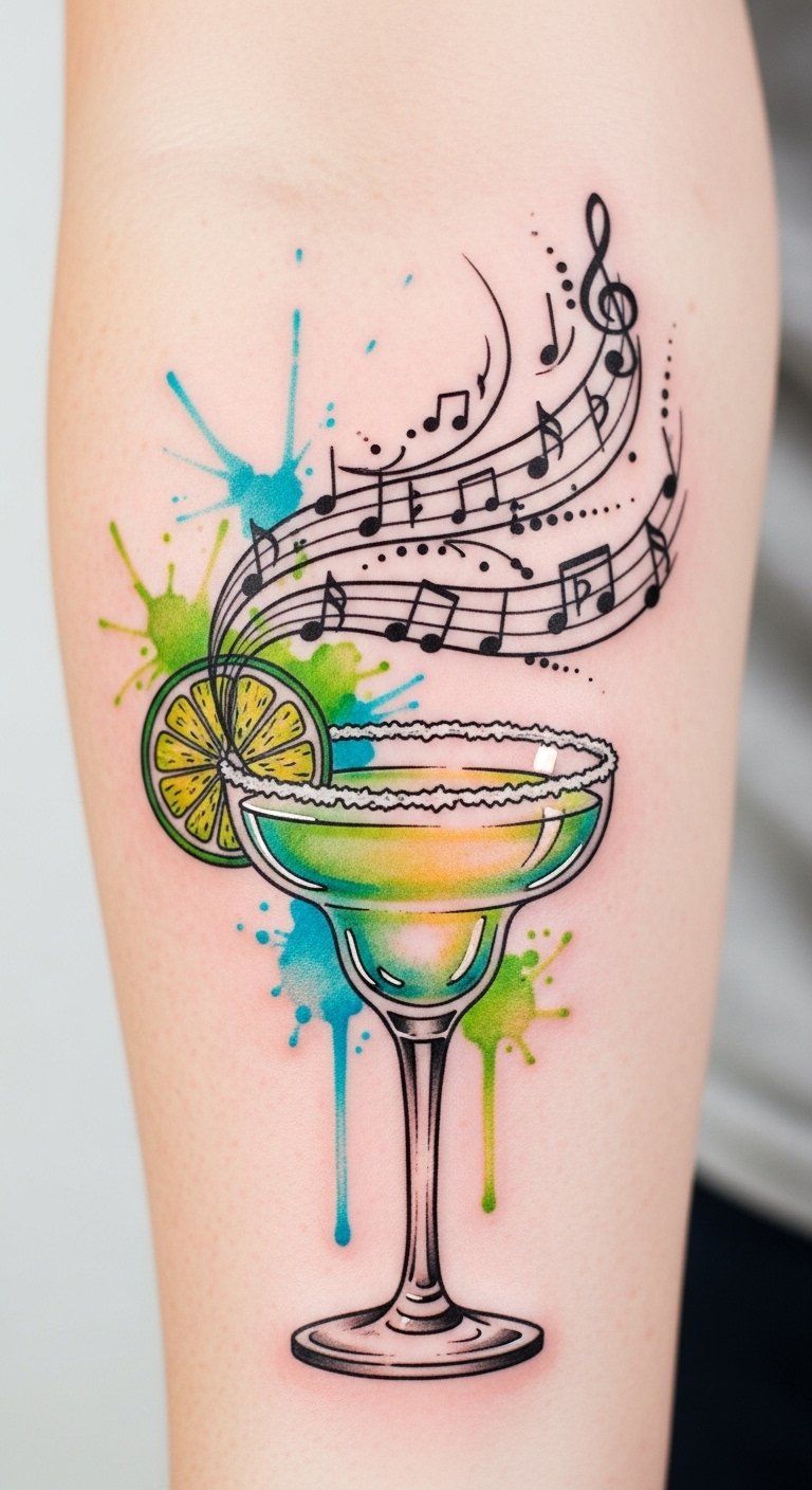 Picture vibrant margarita rhythms dancing alongside musical notes, each sip echoing a joyful melody. Your tattoo could capture this harmony, blending the zest of lime and salt with swirling notes, celebrating your free spirit.