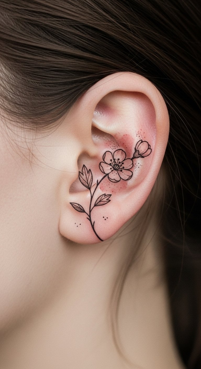 Discreet Behind-the-Ear Floral Motif