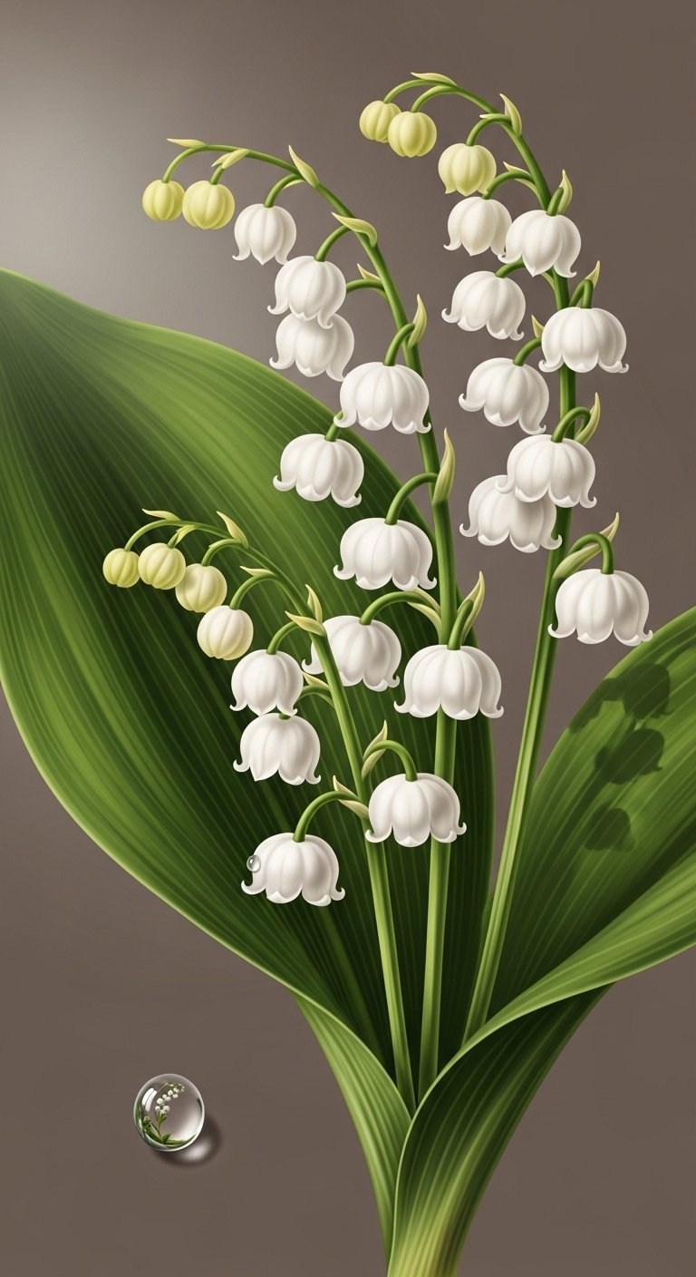 Realistic Botanical Illustration of Lily of the Valley