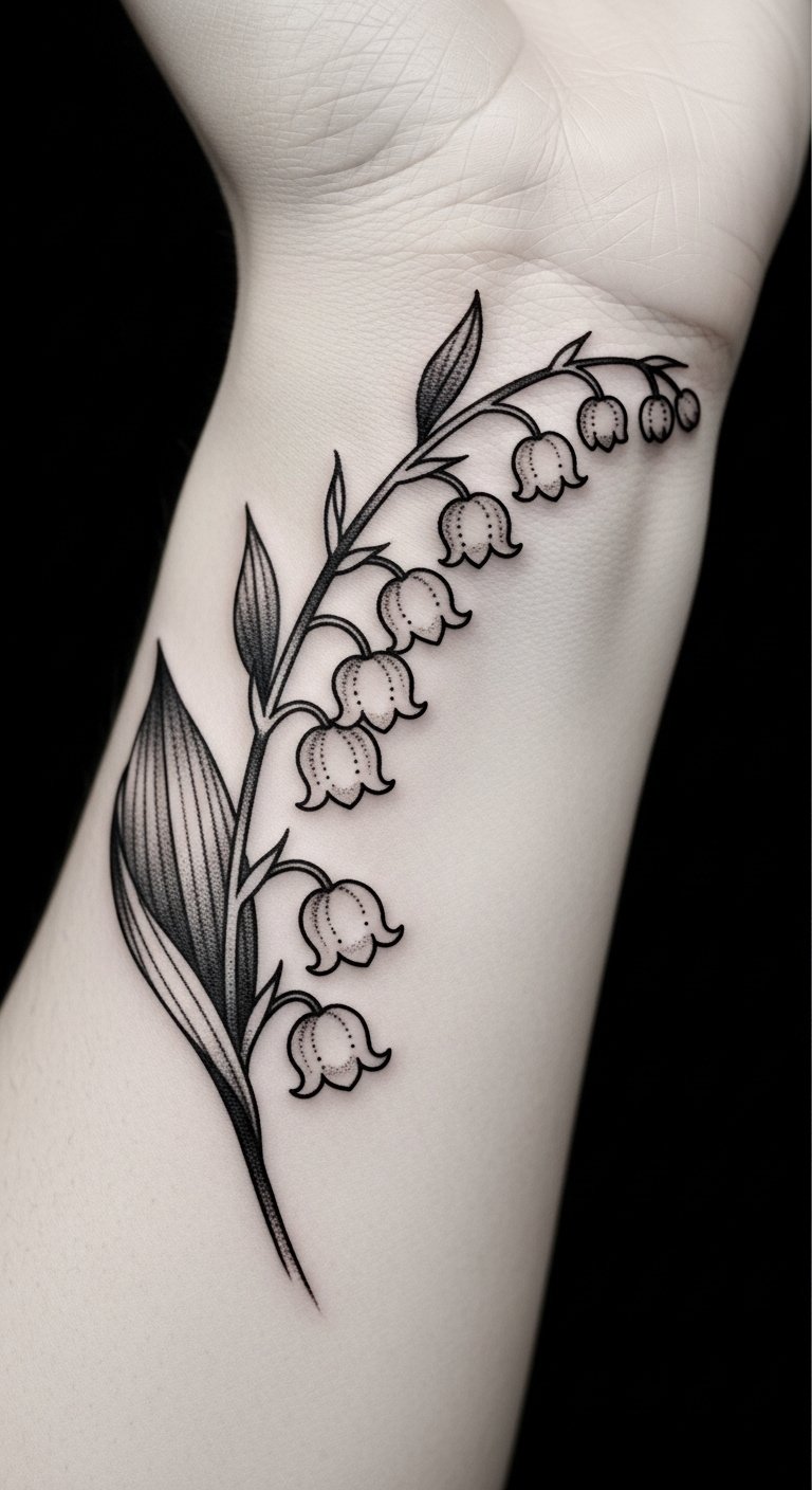 Elegant Lily of the Valley Wrist Tattoo