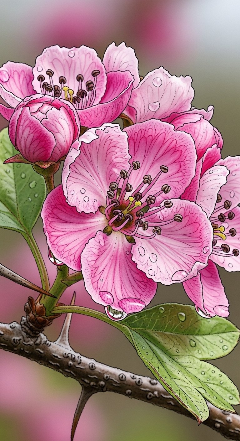 Vibrant Watercolor Hawthorn Branch