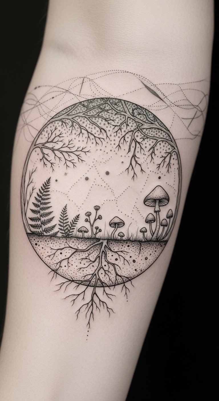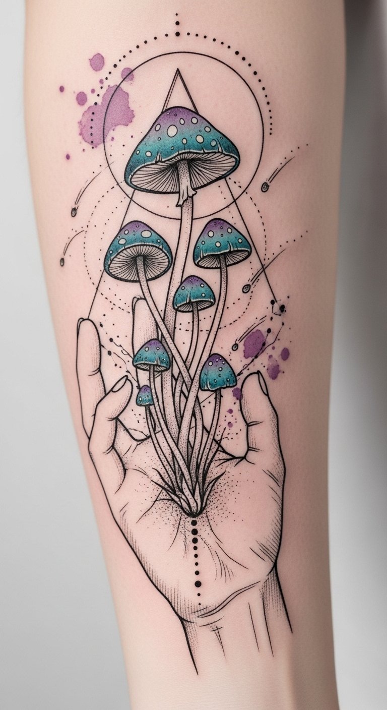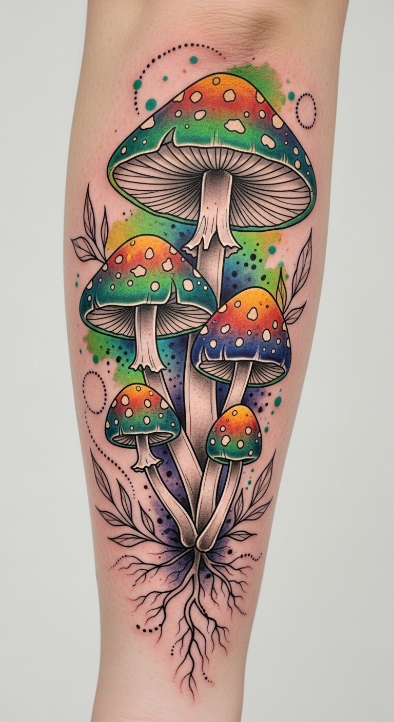 Mushroom tattoos embody transformation and rebirth, reflecting the incredible life cycles of fungi that thrive in decay and darkness.