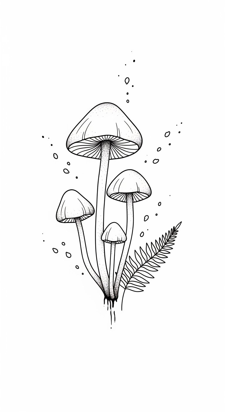 Mushroom tattoos can take on many forms, and minimalist black ink designs offer a striking contrast to their vibrant counterparts. Embracing minimalist artistry, these tattoos capture the essence of nature through organic shapes, creating a sense of freedom and simplicity.