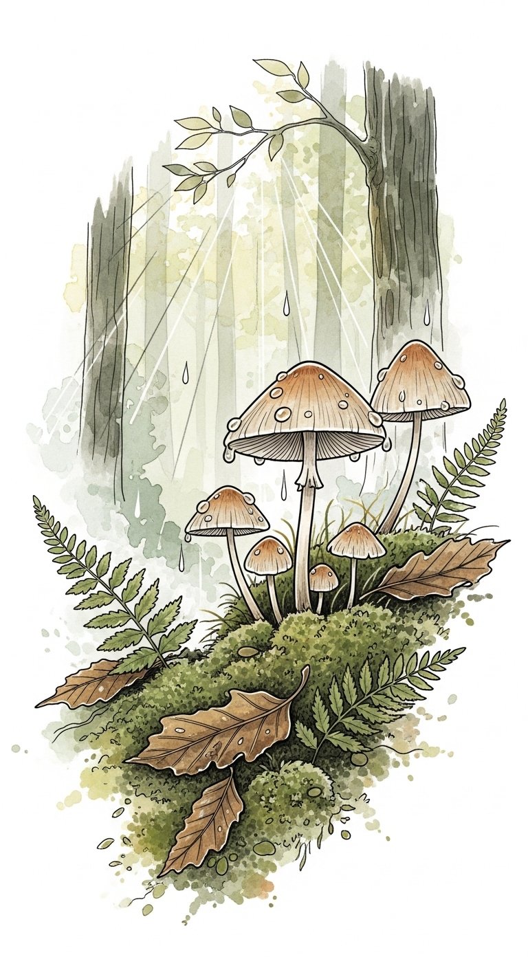 When the rain falls softly on the forest floor, life stirs beneath the surface, and mushrooms emerge like tiny umbrellas, each one a symbol of resilience and renewal.