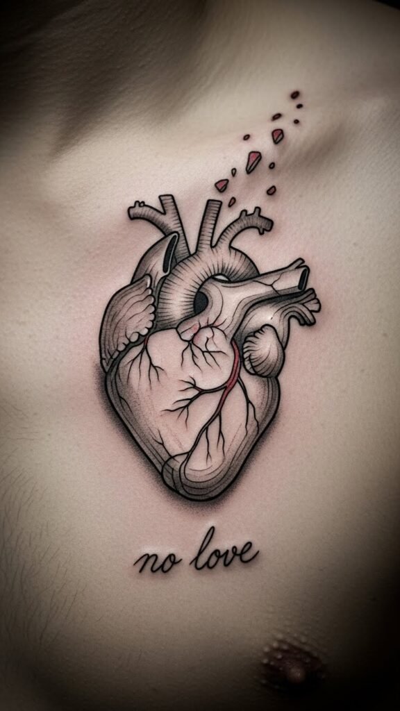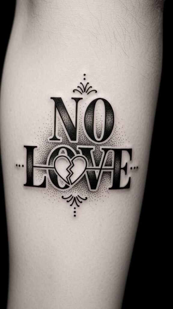 If you want to make a bold statement about your emotional journey, placing a no love tattoo on your chest or near your heart can be incredibly powerful.