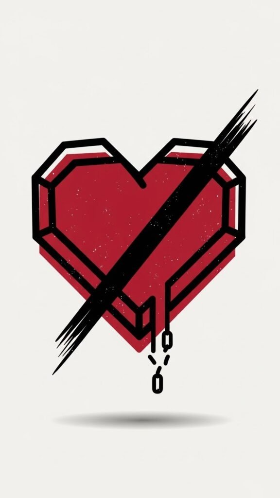 Emerging from the fragments of a shattered heart, minimalist heart negation offers a powerful statement of emotional liberation.