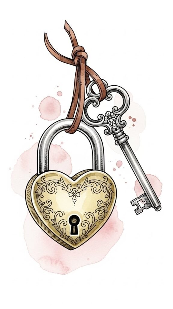 The lock-and-key symbolism in tattoos captures the essence of guarding one’s heart while embracing personal strength.
