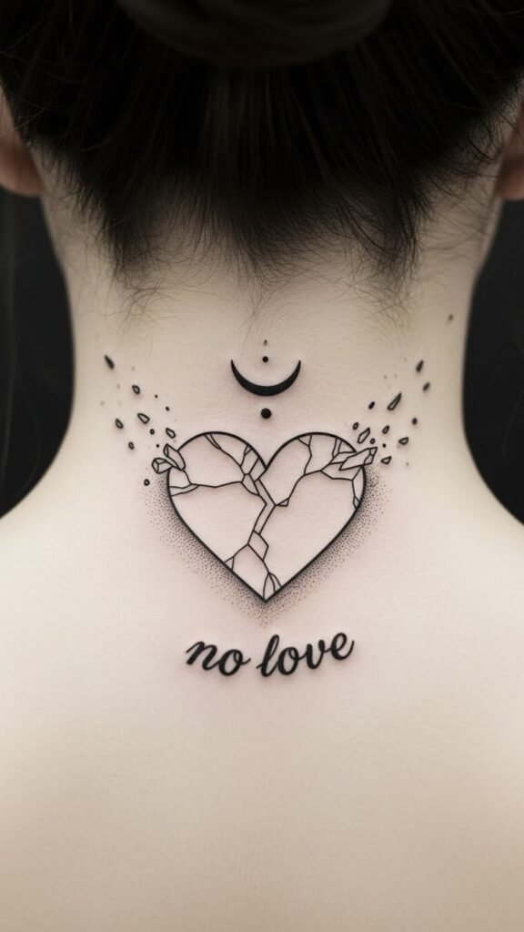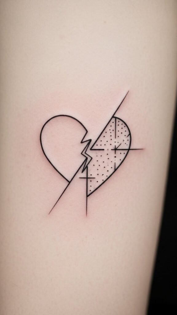 This tattoo style embraces minimalist symbolism, featuring stark lines and simple shapes that boldly reject traditional romance. By choosing heart negation, you celebrate your independence, conveying strength and resilience while marking your journey toward self-love.