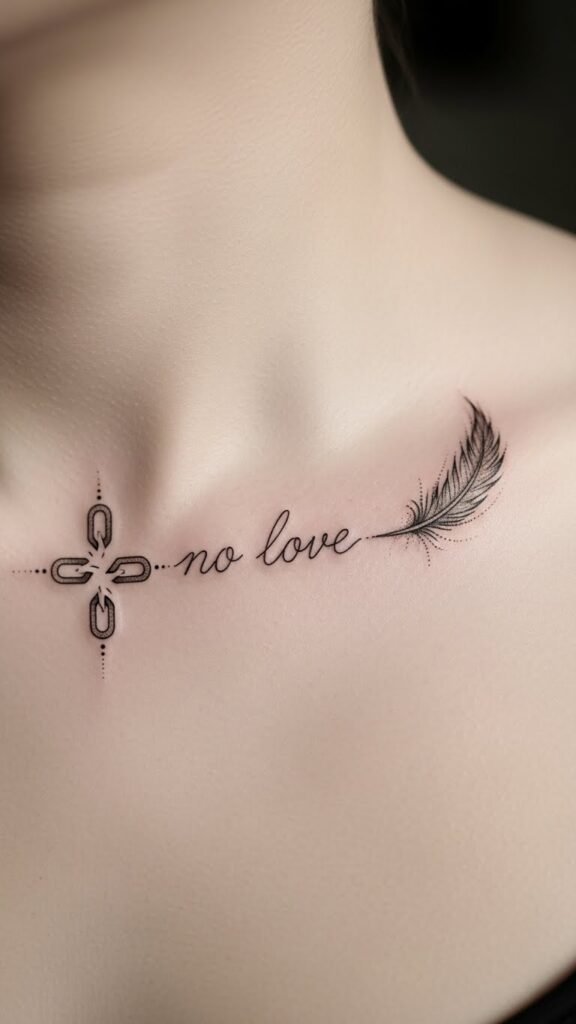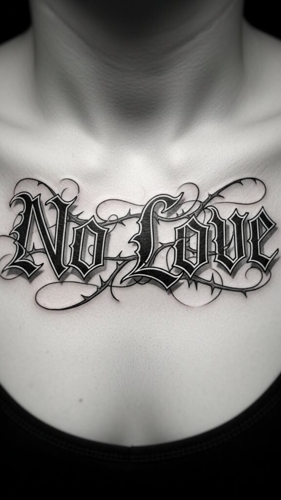 Collarbones serve as a stunning canvas for no love tattoos, transforming an often-overlooked area into a bold statement of emotional independence.