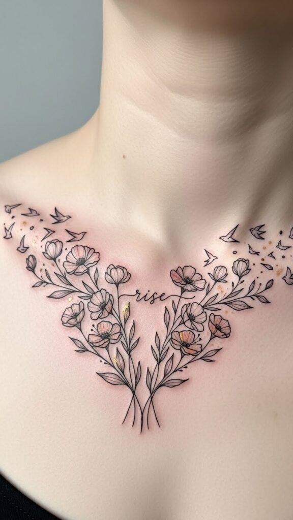 With the collarbone as a canvas for your story, empowering self-love imagery becomes a vibrant expression of your journey toward emotional freedom.