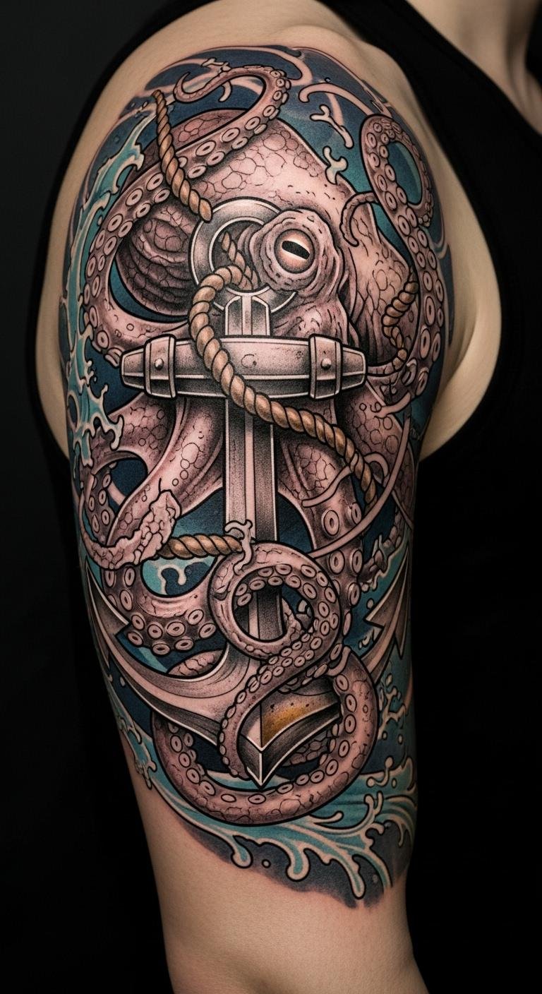 Nautical Roots: Octopus and Anchor Tattoos