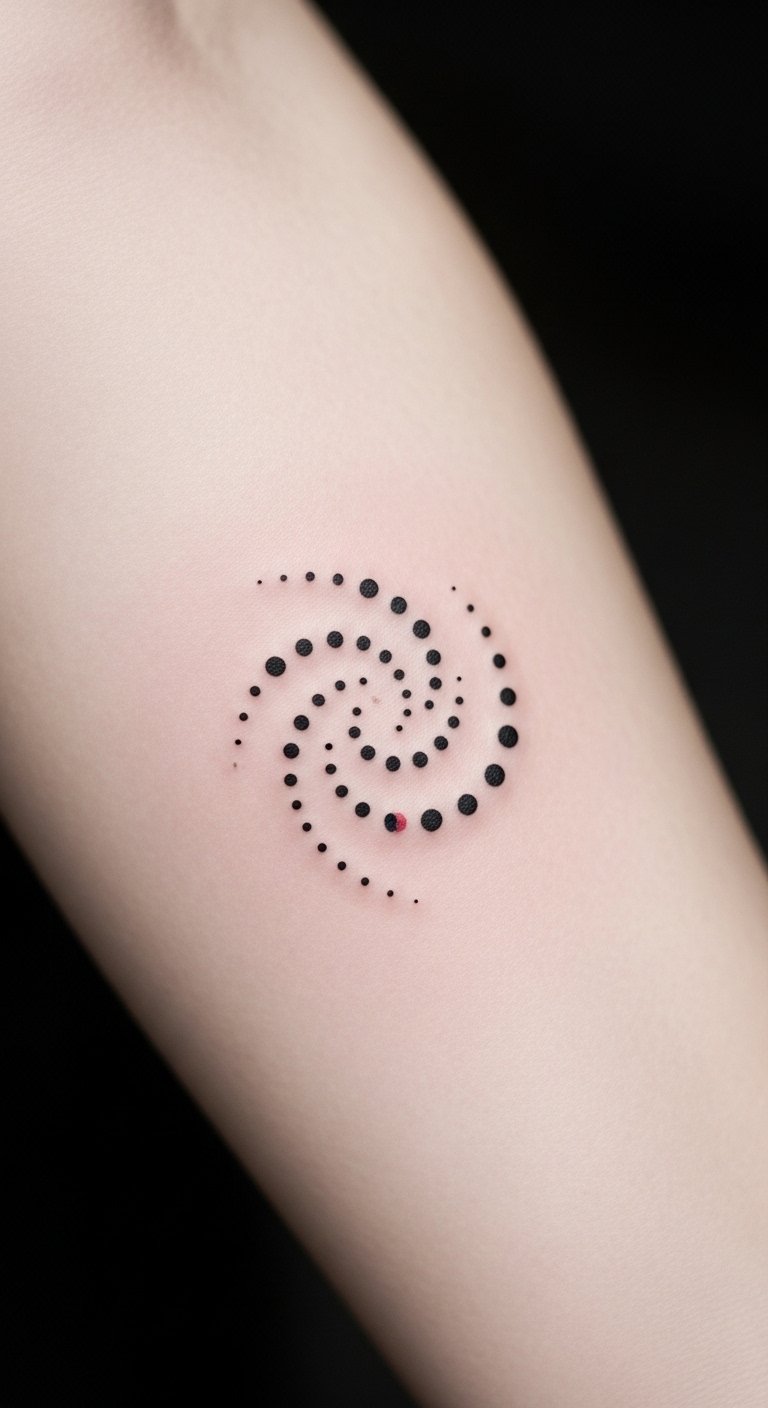 As you explore the concept of journey representation through tattoo art, consider the enchanting imagery of dots arranged in a spiral.