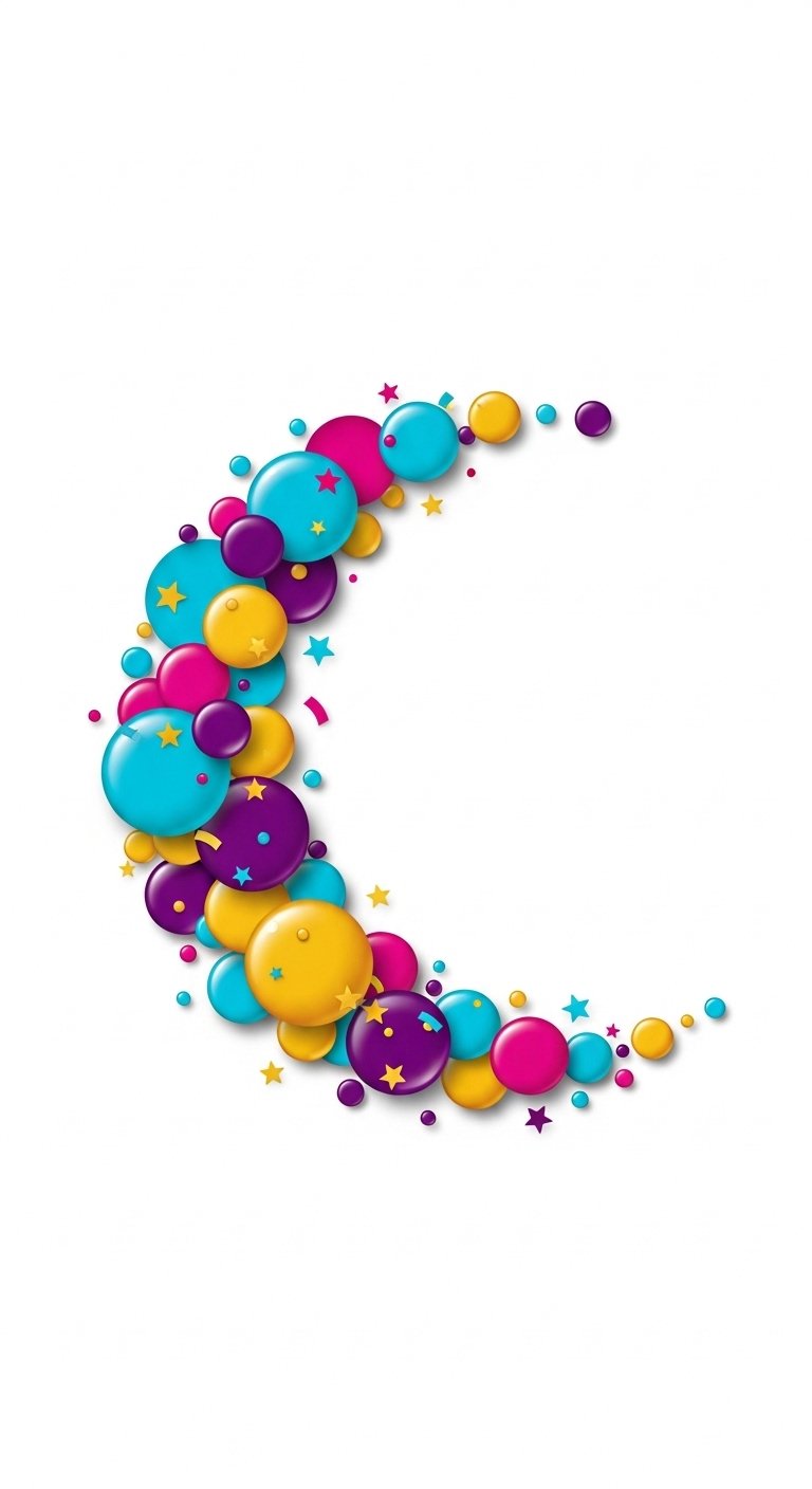 The crescent arrangement symbolizes exploration and transition, the bright contrasting colors evoke joy and bold self-expression, and the star/confetti details add whimsy and celebration; ideal placement is along the wrist, behind the ear, or collarbone to invite frequent glimpses and gentle reminders of creative freedom.