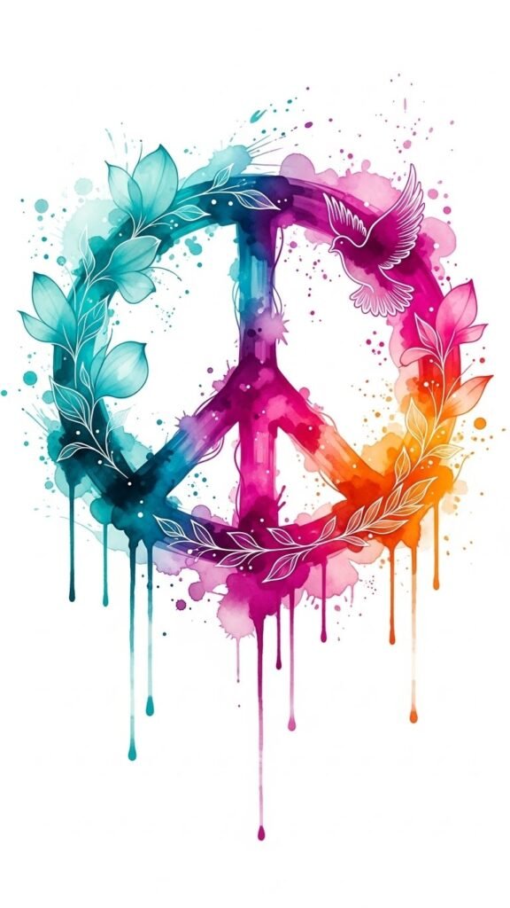 This design channels the original text’s bold, emotional language by translating “vibrant watercolor peace tattoo” into a visual composition that emphasizes freedom and tranquility: the flowing washes and soft petals suggest calm and movement, while the dove and vines add hope and growth.