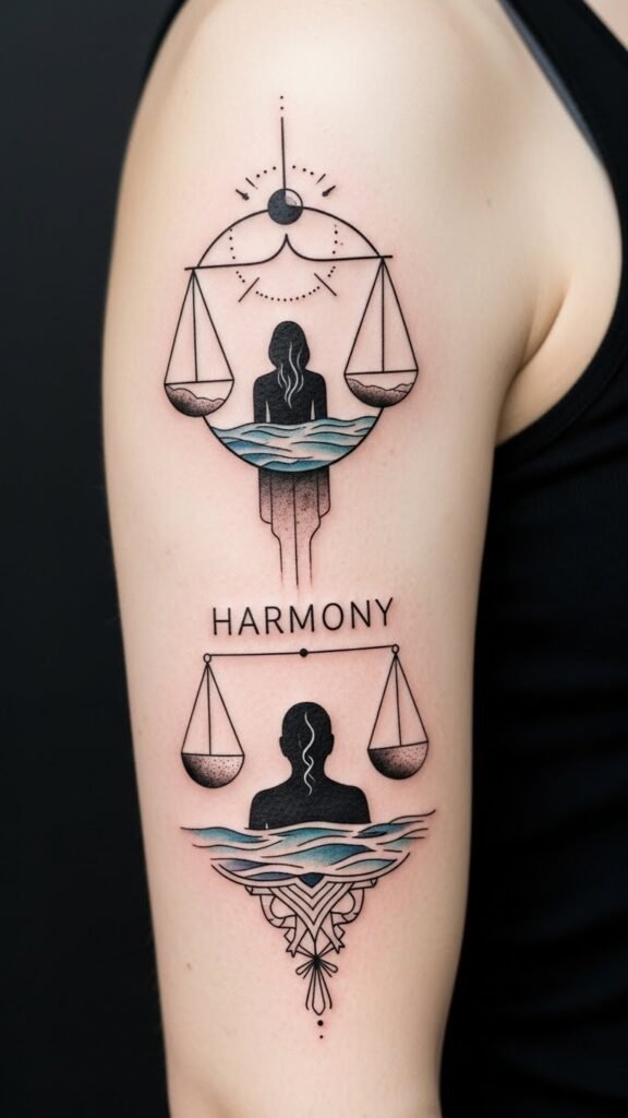 Emotional tone: calm resilience and mindful balance. Recommended placement: inner forearm for visibility and personal reflection, upper chest for a more intimate, protective placement.