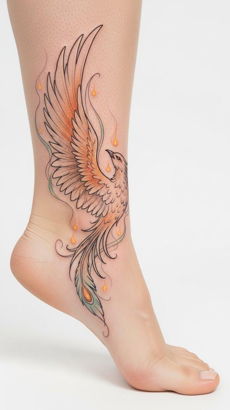 For those seeking a unique expression of resilience and renewal, an ankle tattoo of a phoenix with subtle color can be an exquisite choice.