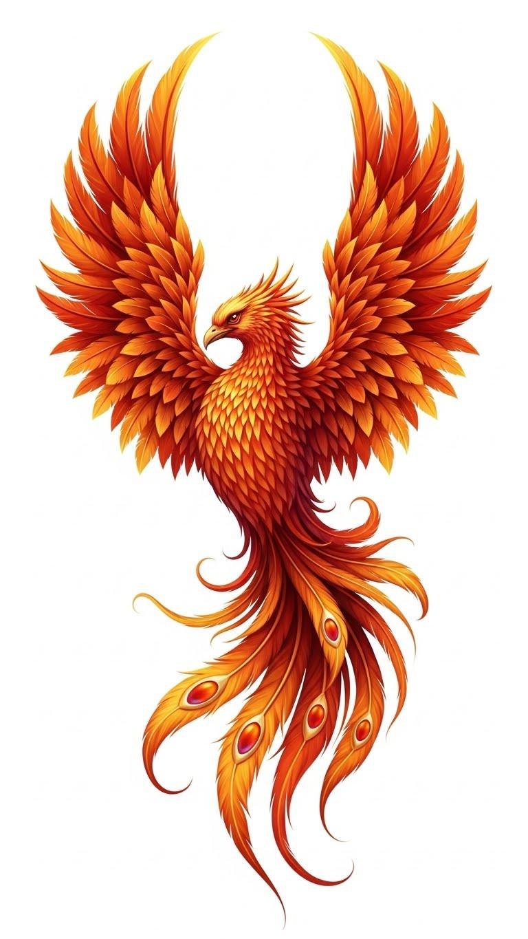 This tattoo concept captures transformation and inner strength through a lifelike phoenix rendered with meticulous shading and textured feathers; its warm palette evokes heat and renewal while intricate plume details suggest personal stories of endurance. Emotionally it reads as a powerful talisman of rebirth and liberation, suited to placements that emphasize movement and scale—such as a full back piece arcing across the shoulder blades, a sweeping chest piece, or wrapping along the side/ribcage—allowing the feathers to flow with the body’s contours and convey upward momentum.