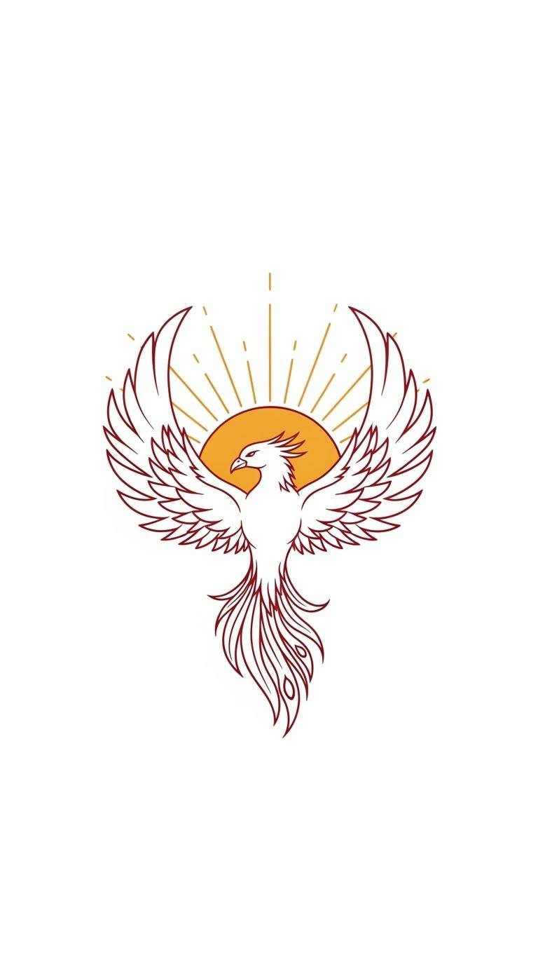 A minimalist phoenix outline captures the essence of rebirth and transformation with striking simplicity.